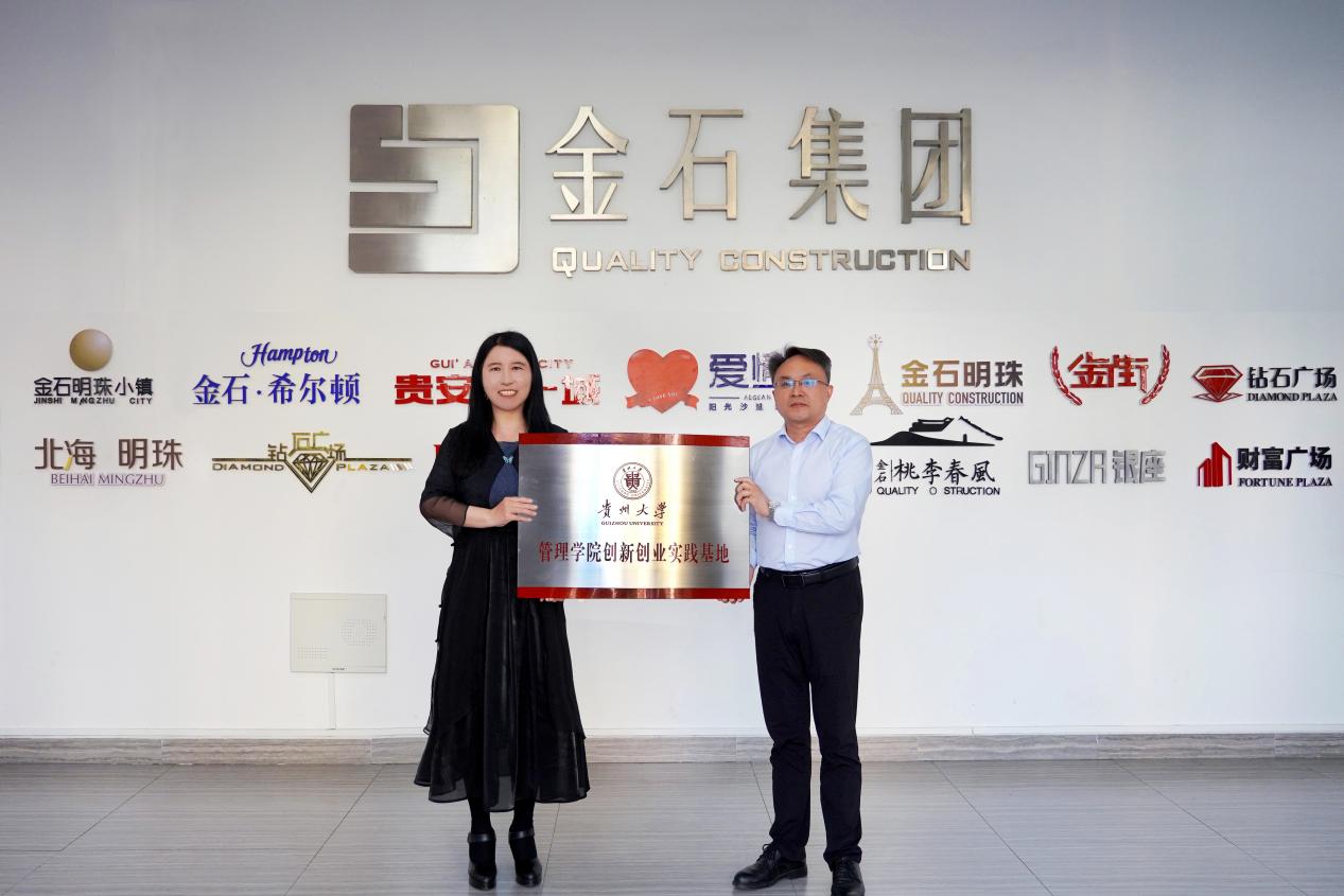 赵留彦副校长介绍了学校就业创业行动,介绍了学校2023届毕业生就业的总体情况及本次走访企业的目的,希望金石集团这样的优质企业多留住贵州大学的毕业生,与贵州大学开展全方位的合作,促进产学研发展共赢。学院院长李烨对金石集团给予乐动官方网站的支持表示感谢。李院长表示校企可进一步加强合作交流,学院的EMBA、MBA、EDP等项目可为金石集团提供人才管理能力提升教育培训,为企业高质量发展储备管理人才。学院周莉莉副书记提出了与金石集团合作做乡村振兴、特色小城镇建设案例开发,让成功案例走进课堂。随后,乐动官方网站李烨院长为贵州中房金石房地产开发集团授牌,授予“贵州大学大学生创新创业基地”。