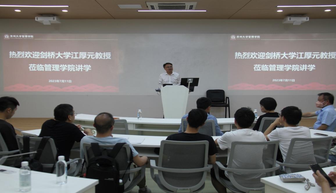 711日下午,管理学院学术讲座顺利举行,本次学术讲座邀请到来自剑桥大学商学院的江厚元教授主讲,本次讲座管理学院李盾博士主持。