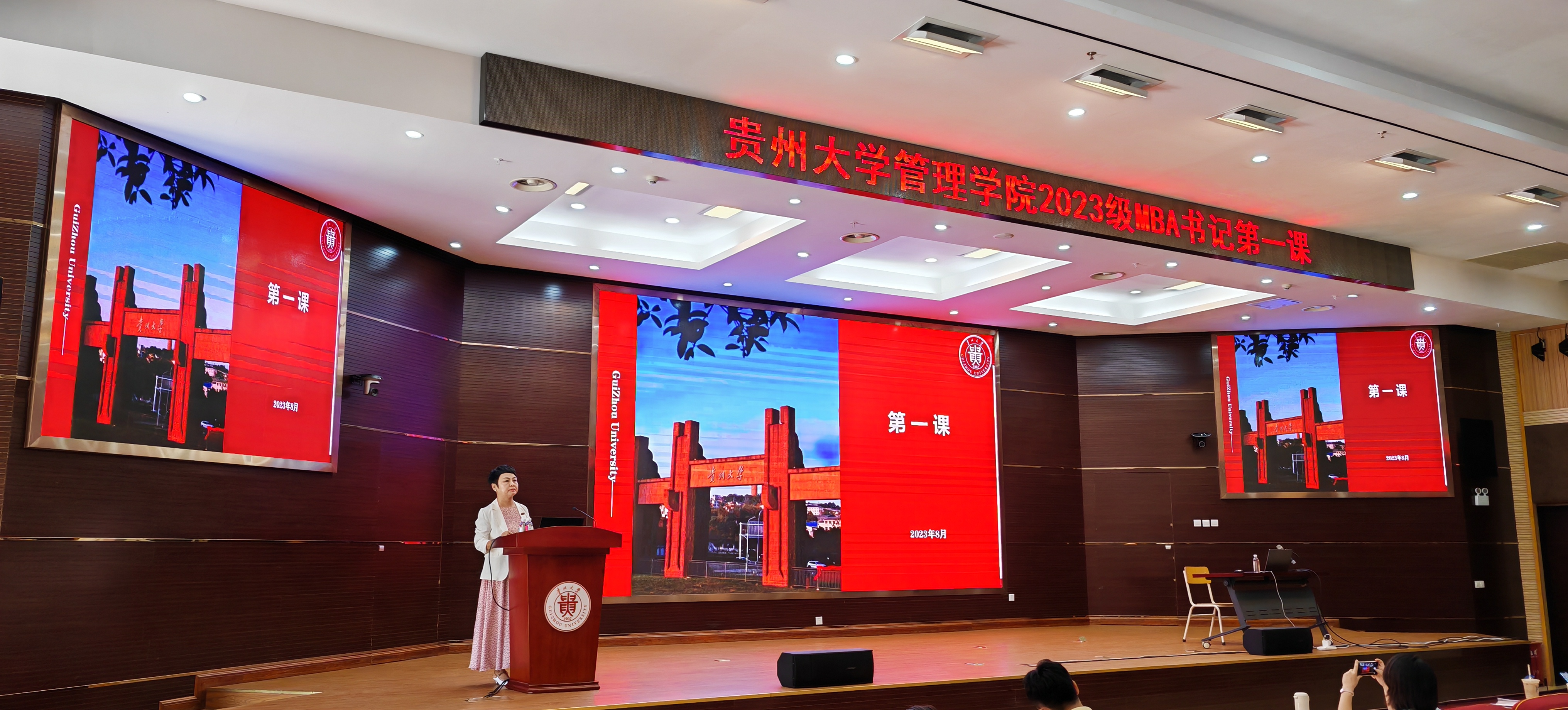2023年8月19日下午,贵州大学党委正处级组织员、管理学院党委副书记(主持党委工作)周莉莉教授为2023级MBA新生开启了书记第一课。周书记为新生详细介绍了贵州大学校史、管理学院发展史、MBA中心的发展历程及现状。