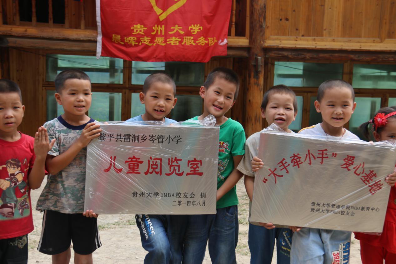 1. EMBA中心/EMBA校友会得知雷洞乡岑管小学校舍老化,他们的文体、学习用品存在短缺EMBA中心/EMBA校友会与岑管小学积极联系。随后开展了一系列的公益助学活动,2013一直坚持,让该爱心活动得以延续20148“大手牵小手”爱心基地正式挂牌