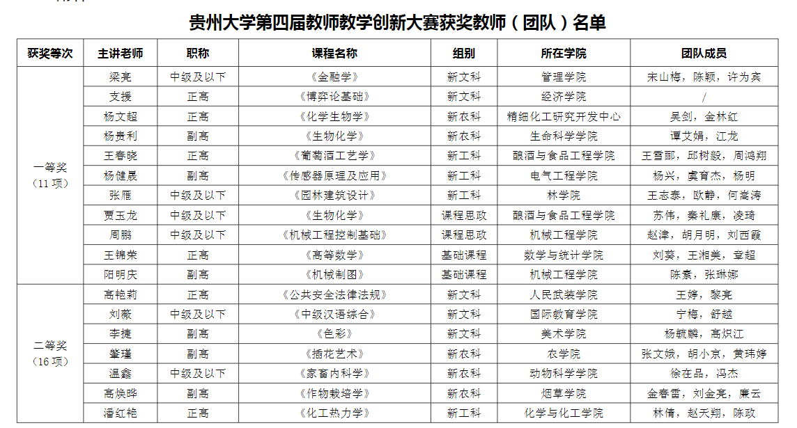 学院在贵州大学第四届教师教学创新大赛中取得优异成绩。学院