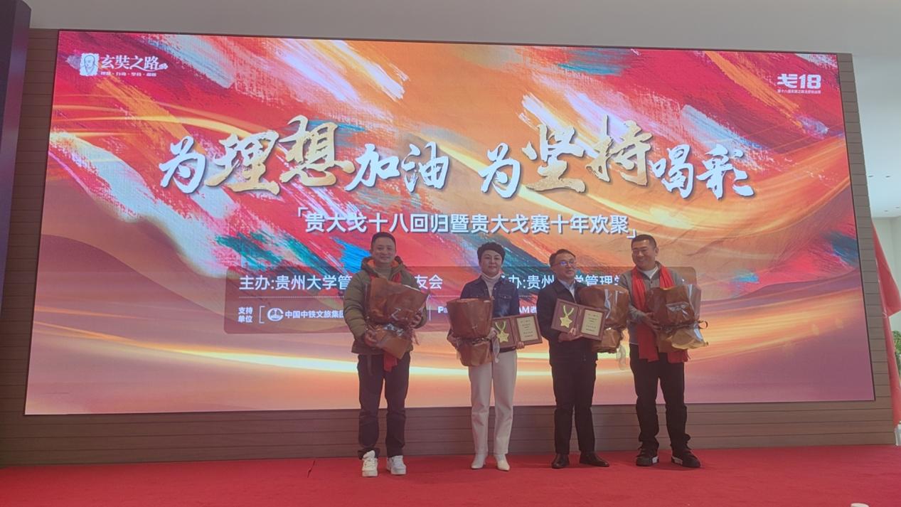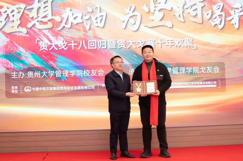 20231223日,戈十八回归暨贵大戈赛十年欢聚庆祝活动隆重在中铁文旅青岩康养小镇举行。今年是玄奘之路戈壁挑战赛第18年,也是贵大参加戈赛10年。贵大管院院长、校友会会长李烨,贵州大学党委正处级组织员、管理学院党委副书记(主持党委工作)周莉莉,管理学院副院长王婷、管理学院党委副书记、纪委书记邓琳、西部戈友联盟会长蒋磊、管理学院校友会执行会长张钊、MBA校友会会长汪健,贵大研究生导师胡文(校友)、中铁文旅贵阳公司总经理胡永清、副总经理梁济光、130余名戈友、校友、各届友人以及贵大EMBA“18”品牌赞助商、合作伙伴代表齐聚盛会,为戈十八喝彩,为戈十八战队中的每一位勇士感到自豪,为贵大戈友的坚持加油!