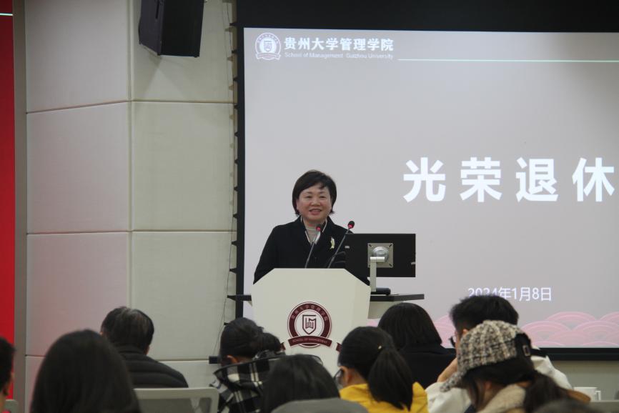 学院领导为4位光荣退休的老师颁发荣誉证书和鲜花,感谢她们多年来对管理学院发展所做出的贡献。退休教师代表管理学院原副院长宋山梅教授发言,在管理学院大家庭里面感受到了温暖和活力,并对管理学院的支持和培养表示感谢。接着,学院领导和退休教师在学院一楼大厅合影留念。