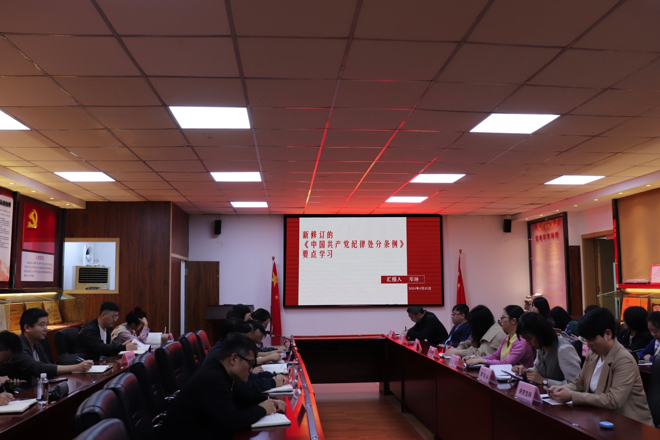 院党委副书记兼纪委书记邓琳同志做党纪学习教育读书班专题辅导,重点就《中国共产党纪律处分条例》向与会人员做学习辅导,主要包括条例制定和修订的重要历程、新条例修订的重要意义和主要内容、做遵纪守法的党员三个部分。在今年18日,习近平总书记在中央纪委第三次全会上专门强调:“以新修订的纪律处分条例为契机,在全党开展一次集中性纪律教育。”