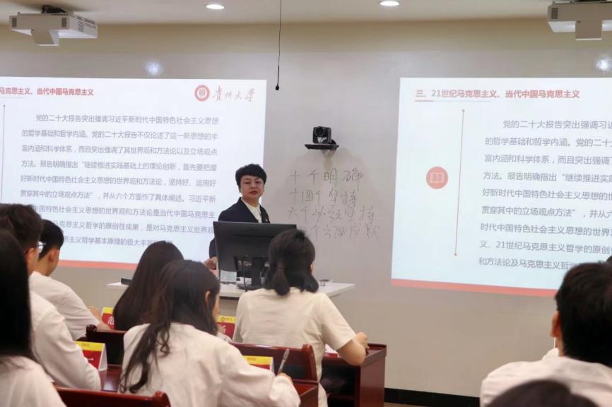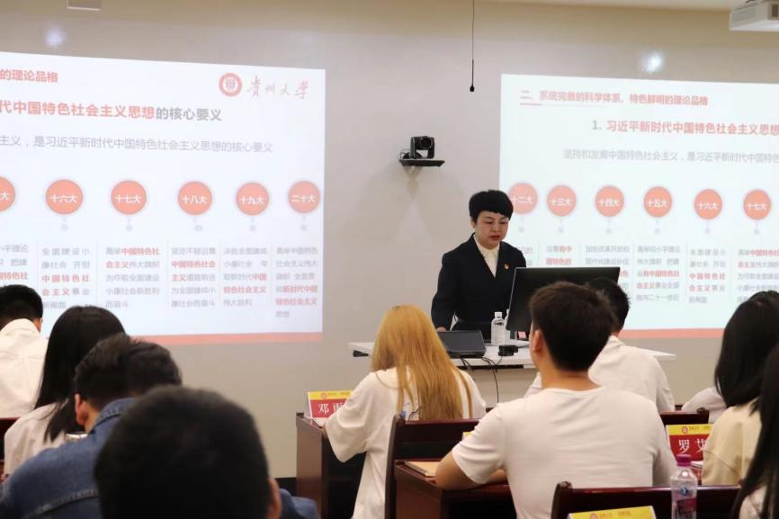 2024年4月27日上午,乐动官方网站分党校第四十期入党积极分子培训班专题党课——习近平新时代中国特色社会主义思想,在管理学院致远楼402教室举行。贵州大学党委正处级组织员、管理学院党委副书记(主持党委工作)周莉莉担任主讲人。