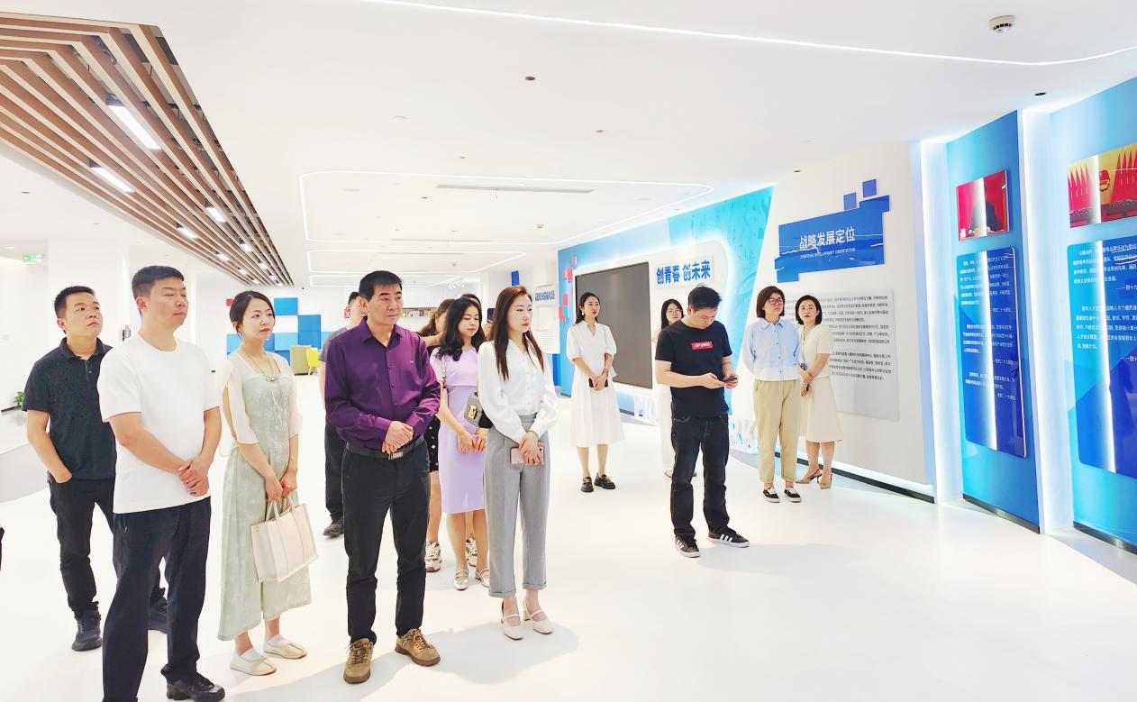 6月17日,贵州大学企业数字化转型高级研修班在武汉文创大厦进行了企业参访。工作人员引领学员们参观了大厦内众多优秀企业的展板,展示了新兴,活力企业的蓬勃发展和创新力量。