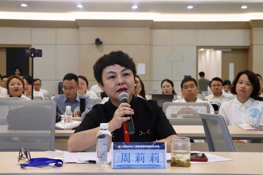 随后,贵州大学党委正处级组织员、管理学院党委副书记(主持党委工作)周莉莉教授对本次大赛进行了点评和总结,并再次向评委老师表示感谢。她指出,本次挑战赛的选手们给评委和观众留下了“精彩纷呈、精英对决、精准判研”的深刻印象。十支队伍各具特色,充满创新,不仅取得了令人满意的成绩,也让评委老师们看到了MBA、EMBA学生在理论知识和实践分析能力上的深厚功底。最后,周莉莉教授勉励参赛选手们再接再厉,勇闯全国大赛的舞台,继续展现他们的才华和实力。