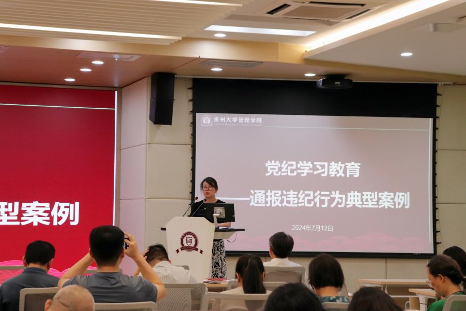 院党委副书记邓琳通报、部署近期工作并开展党纪学习教育和师德师风学习教育。通过违纪行为典型案例的通报,警醒全体教职工严守党纪国法,同时要恪守教育品质、严守师德红线。此外,邓琳副书记还解读了不合格党员组织处理办法,进一步明确了党员行为规范和组织纪律的严肃性。在分管工作方面,她全面总结了上半年学院学生工作成果,对在教学一线默默奉献、取得优异成绩的教师表示高度赞扬,并呼吁全体教职工继续关心和支持学生工作。
