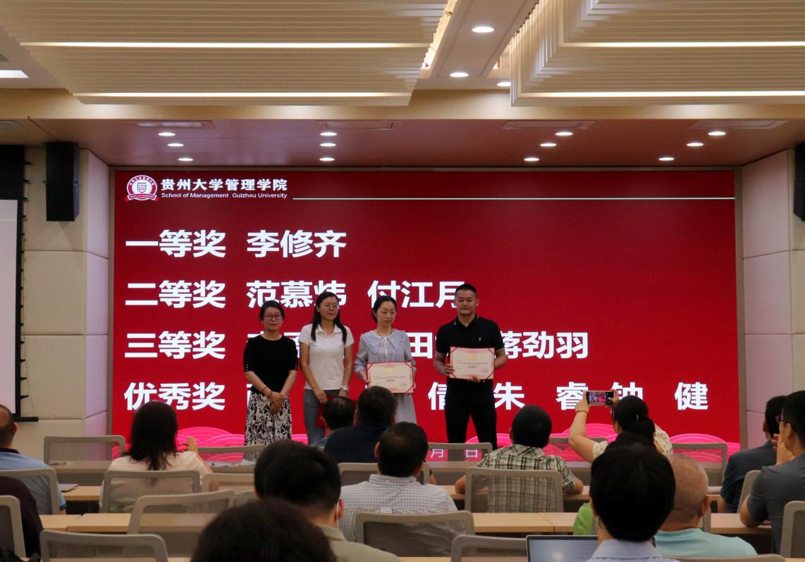 会议第二项,青年教师教学大赛获奖表彰。学院领导为获奖教师颁发荣誉证书并合影留念。李烨院长肯定了各位参赛老师在比赛中的表现,并对大家表示热烈祝贺,鼓励大家在更高级别的教学大赛中再创佳绩。