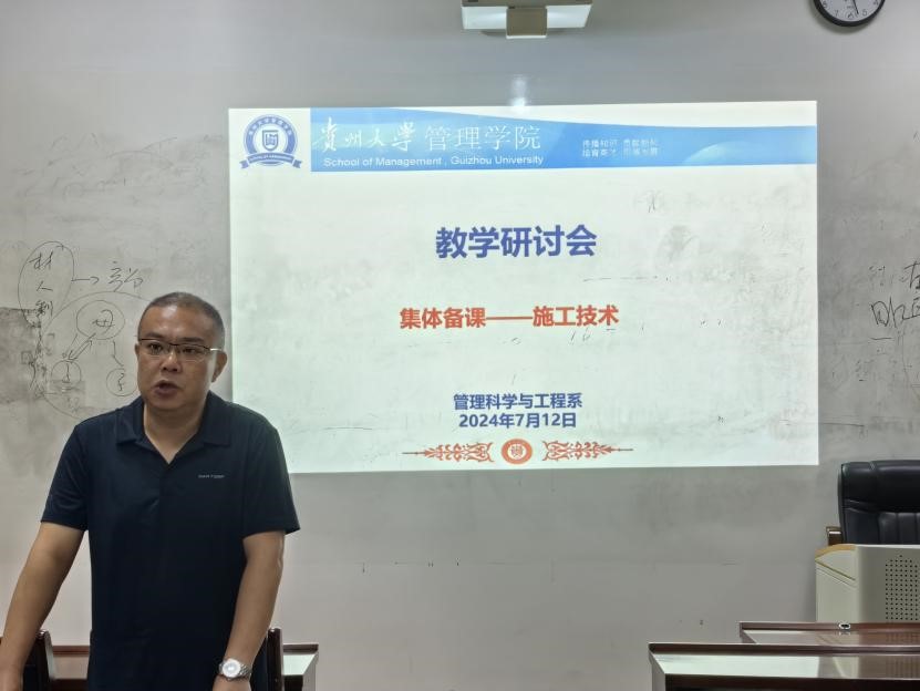 2024年7月12日,管理科学与工程系在MBA201教室进行新一期教研活动,活动主体分别是《施工技术》课程集体备课及两位年轻博士试讲。