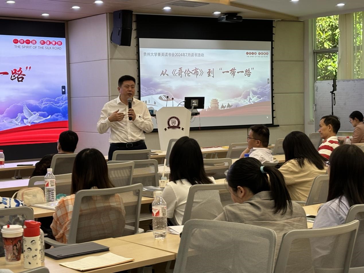 202476日,贵州大学管理学(EMBA&MBA&EDP)菁英读书会在管理学院三楼报告厅举办了主题为从《哥伦布》到“一带一路”的读书活动。本期读书由EMBA校友罗纲举(贵阳方舟科技有限公司总经理、读书会荣誉会长)分享。活动以现场分享、互动提问的方式让来自读书会和学院在读的MBA40多名校友、同学参与到本次活动当中。贵州大学党委委员、乐动官方网站院长李烨出席了活动。活动主持人为读书会会长吴迪、读书会联合会长陈隽宁。