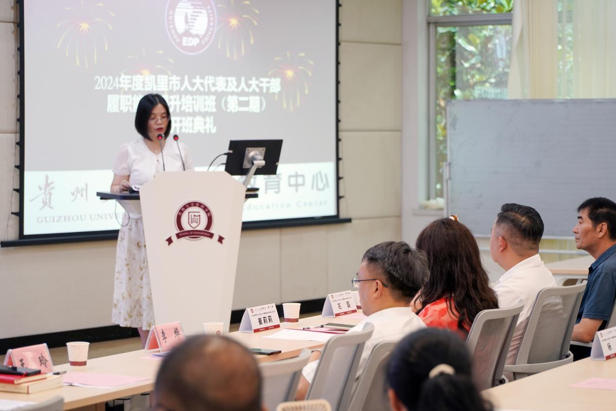 贵州大学党委委员、管理学院院长李烨,乐动官方网站EDP教育中心张勇主任,凯里市人大常委会党组成员、副主任王玲出席了开班仪式。
