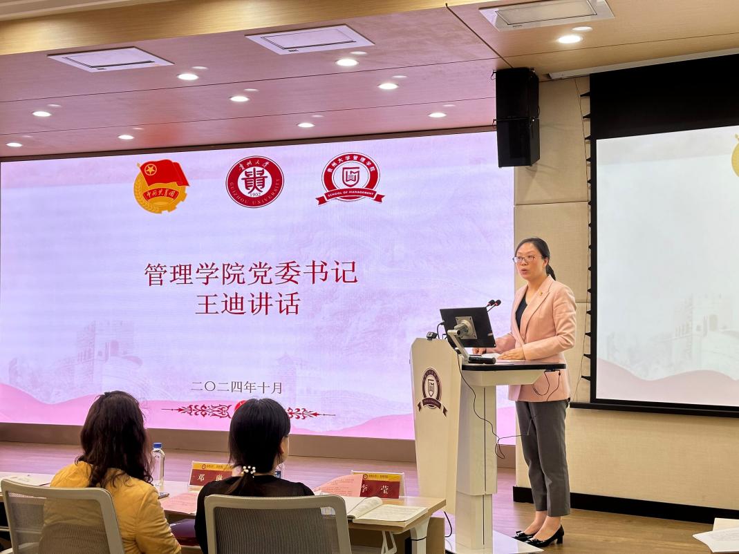 管理学院第十七届学生会执行主席岳文燕,做2023-2024年度学生会工作报告。