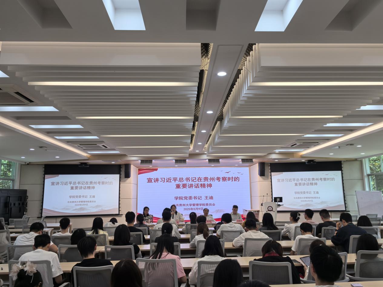 学院党委书记王迪领学重温《习近平总书记2011年5月9日视察贵州大学重要讲话精神》,习近平总书记讲话当中强调:青年应树立远大理想,并在实践中磨炼自己,做到志存高远、脚踏实地。总书记鼓励贵州大学继续培养少数民族人才,推动民族团结进步,并赞扬了贵州大学的历史和贡献。他还提到学习应学以致用,传承中华文明,推动中华民族的伟大复兴。
