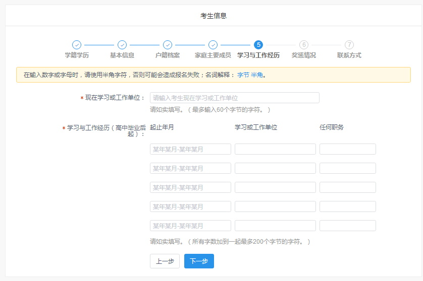 第五步:填写学习与工作经历