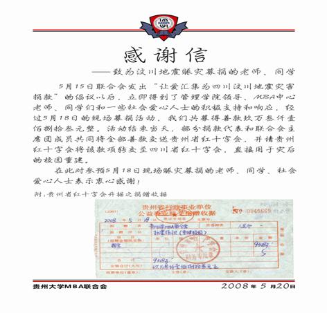 2008年5月24日 MBA汶川捐款感谢信