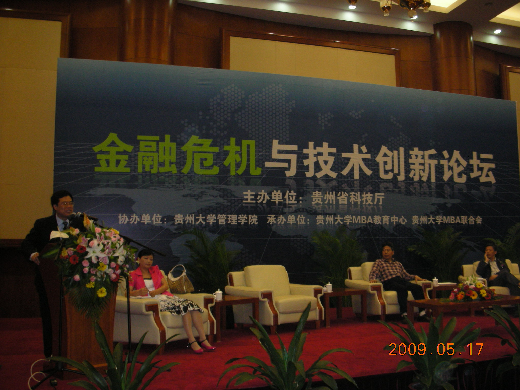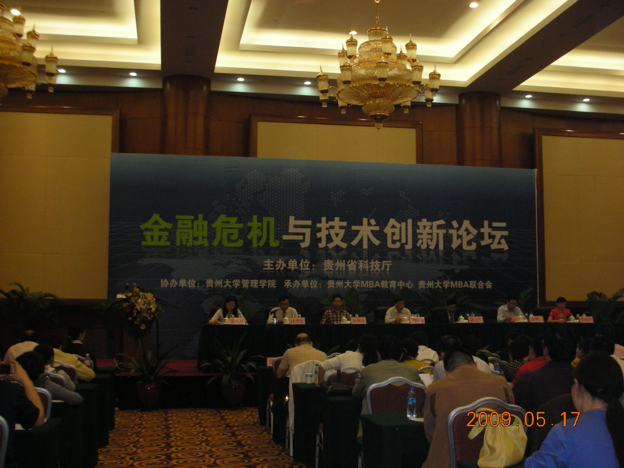009年5月17日,在贵州省国际会议中心,由贵州省科技厅主办、乐动官方网站协办、贵州大学MBA教育中心和贵州大学MBA联合会承办的“金融危机与技术创新论坛”取得圆满成功。贵州省科技厅秦水介副厅长和陈汛副厅长、贵州大学常务副书记赵明仁教授和常务副校长封孝伦教授等领导出席了本次论坛,封孝伦教授代表贵州大学在论坛开幕式上作了热情洋溢的致辞。同时包括贵州省科技厅下属科研院所技术和管理骨干代表、贵州大学MBA学员、管理学院和经济学院相应专业硕士研究生、部分企业代表和MBA校内外导师近四百名参加了本次论坛。