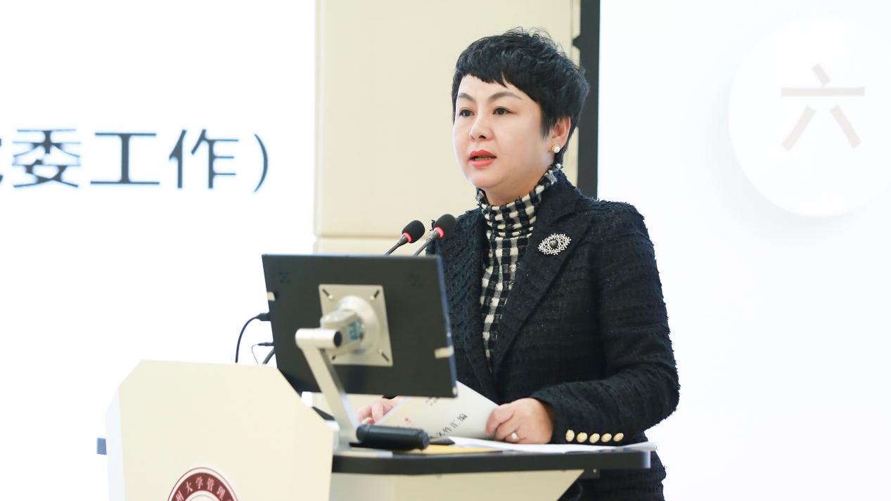 贵州大学研究生院学位管理科科长杨玥出席了本次会议,杨科长介绍了贵州大学近三年学位论文抽检的情况,并解读了《贵州大学研究生学位论文抽检结果处理办法》,还通报了学校2023年工商管理硕士(MBA&EMBA)学位论文的盲评情况。