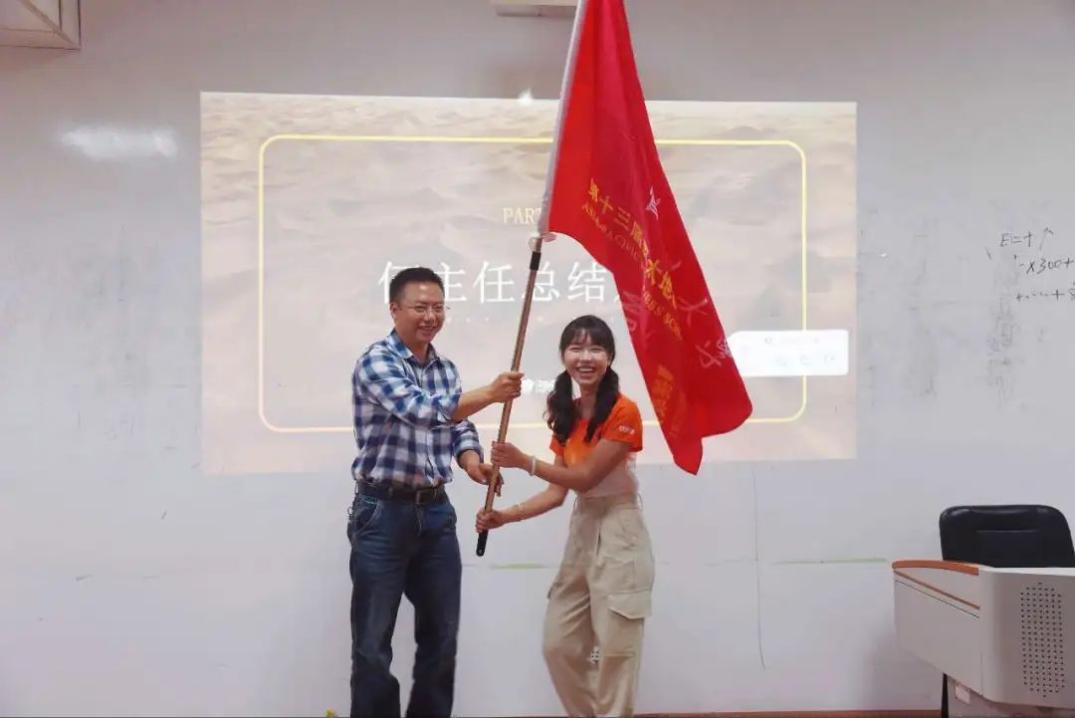 乐动官方网站MBA教育中心常务副主任何跃勇与沙13领队刘紫淳完成了授旗仪式,刘紫淳表示我们一定全力以赴,安全出发、安全回来。