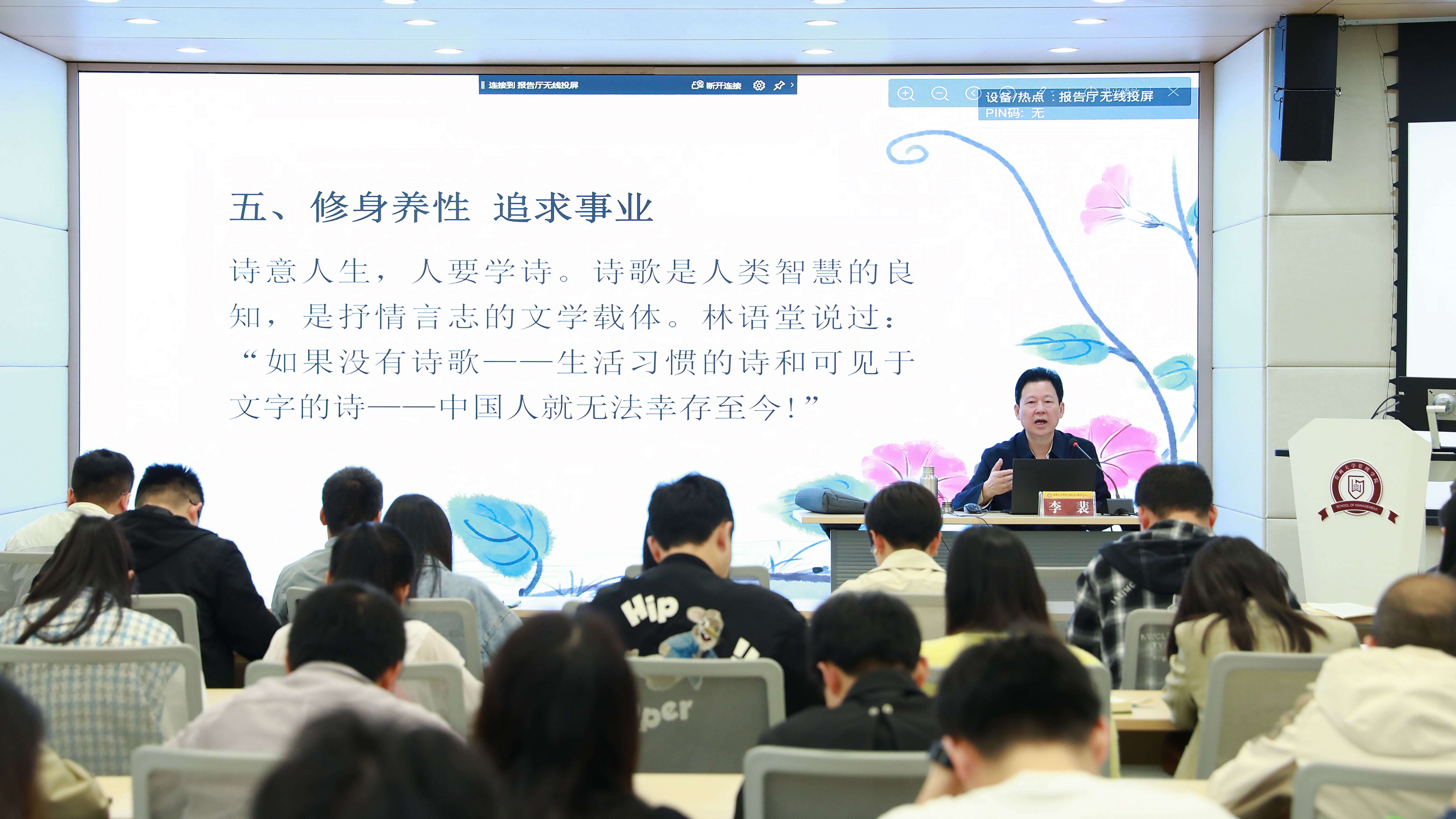 讲座正式开始前,李裴先生强调“诗意人生”是积极有为的人生态度,是一种心态,一种境界,更是一种人生智慧,他引用了贵州省文联、作协主席欧阳黔森、李发模先生等人的语录,进一步强调了“诗意人生”的重要性。“国无德不兴,人无德不立”,“太上有立德,其次有立功,其次有立言”。同时,李裴先生引用习近平总书记的发言和《左传》中的名言,强调“立德、立功、立言”就是做人做事做学问,突出了“德”的重要性。