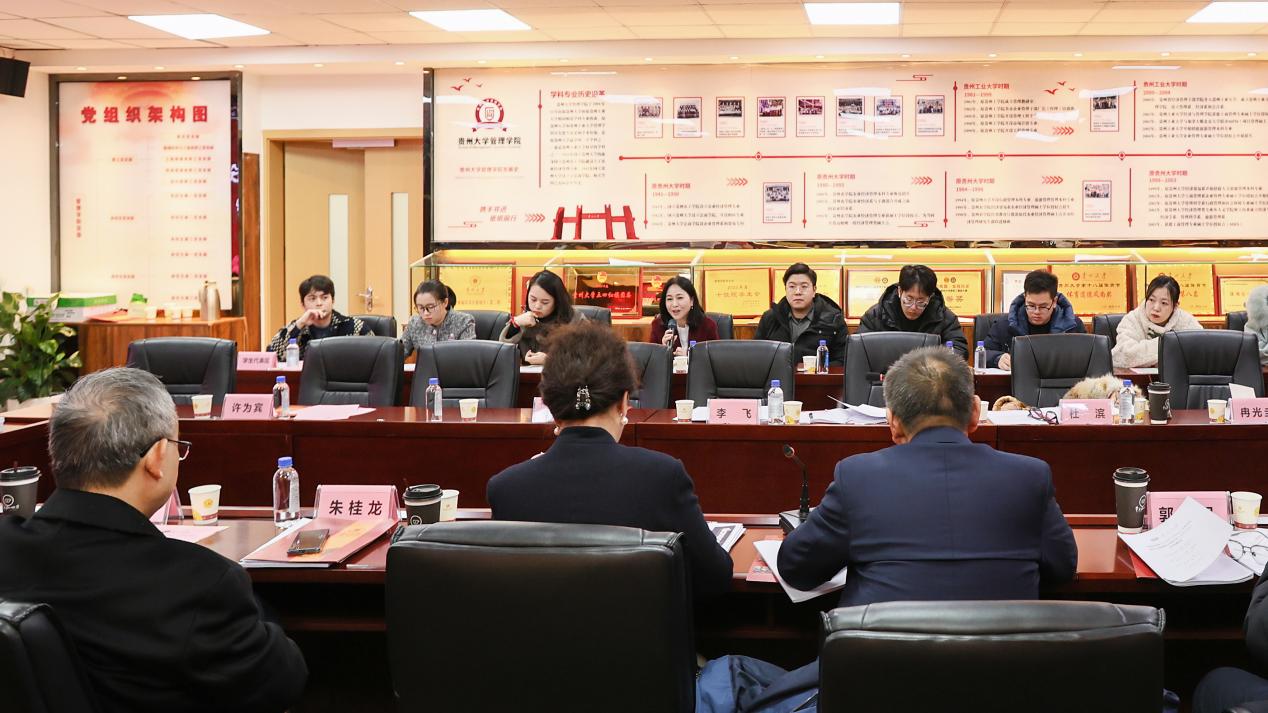 出席此次评审会议的校、院领导有:贵州大学党委常委、副校长李飞,管理学院党委书记王迪,贵州大学党委委员、管理学院副书记、院长李烨,贵州大学党委正处级组织员、管理学院党委委员李开学,管理学院副院长李本光、王婷,管理学院党委副书记、纪委书记邓琳,管理学院副院长许为宾。